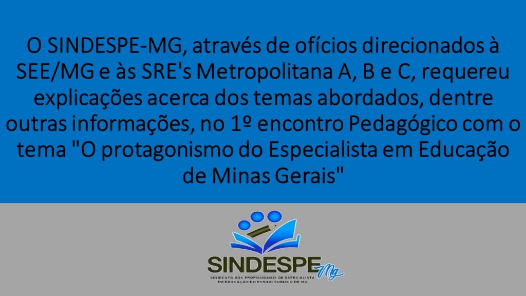 O SINDESPE, requereu explicações acerca dos temas abordados no 1º encontro Pedagógico do Especialista em Educação de MG – SEGUE RESPOSTA DA SEE/MG